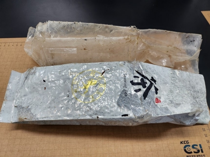 발견 당시 포장지 외부는 탈색돼 있었고 일부가 찢어진 상태였다. 내부에는 소량의 바닷물이 유입된 흔적이 확인됐다.