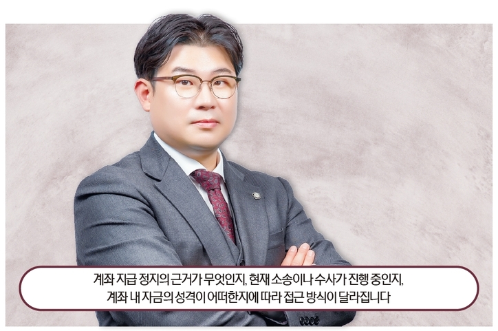 정지의 근거가 무엇인지, 현재 소송이나 수사가 진행 중인지, 계좌 내 자금의 성격이 어떠한지에 따라 접근 방식이 달라지기 때문에 상황을 정확히 파악하지 않은 채 무작정 해제 신청에 나섰다가 오히려 불리한 결과를 초래하는 경우도 있습니다.