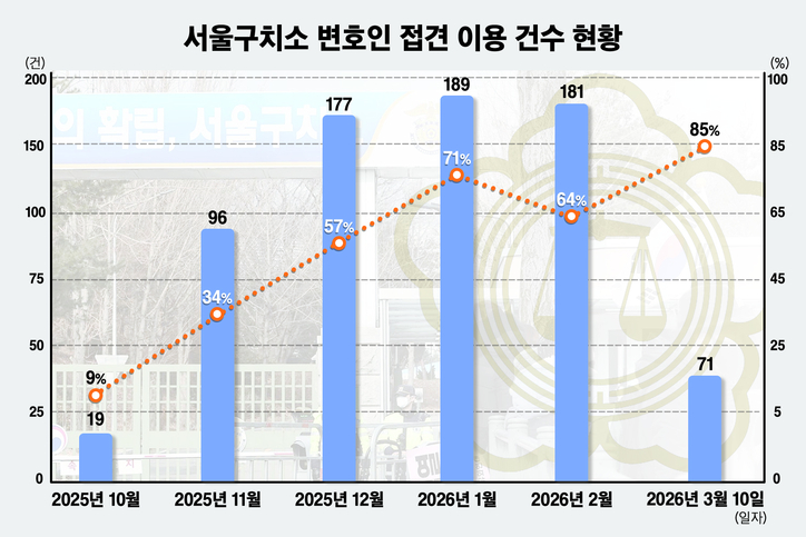 초기 9%였던 이용률은 11월 34%, 12월 57%, 올해 1월 71%로 증가했고, 3월(10일 기준)에는 85%까지 확대됐다. 접견 취소율을 고려하면 실제 예약 수요는 이보다 더 높은 것으로 분석된다.