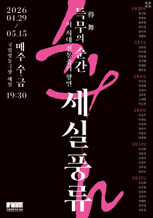 국립정동극장은 오는 29일부터 5월 15일까지 매주 수·금요일, 서울 중구 국립정동극장 세실에서 ‘세실풍류 득무(得舞)의 순간’을 선보인다고 2일 밝혔다.