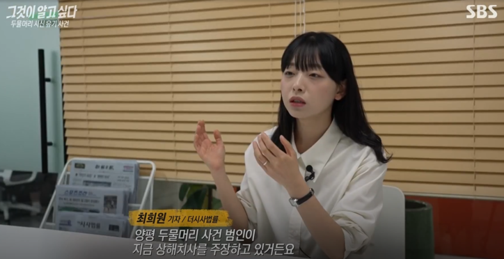 25일 <더시사법률>의 취재를 통해 SBS 그것이 알고 싶다가 양평 두물머리 시신 유기 사건의 실체를 추적했다. 피의자의 자백에도 불구하고 100일 넘게 시신이 발견되지 않으면서 사건의 진실을 둘러싼 의문이 커지고 있다.