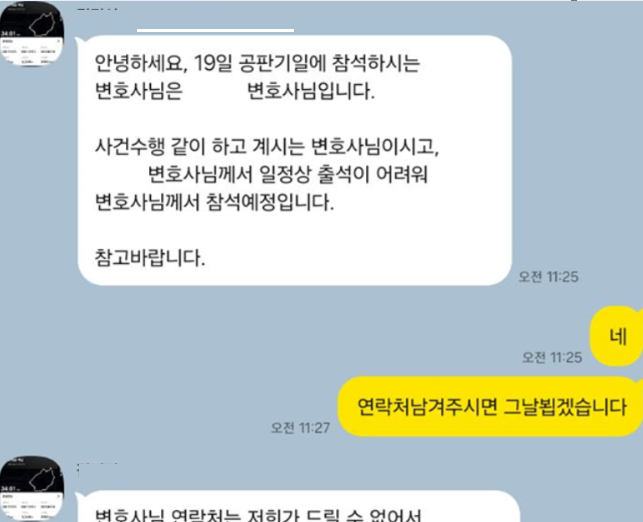 제보자들의 공통된 진술에 따르면 의뢰인들은 A변호사 및 소속 변호사들의 연락처를 알지 못한 채 단체 대화방에서만 소통했고, 재판 당일에는 여성 어쏘 변호사 C씨가 출석하는 방식이다.