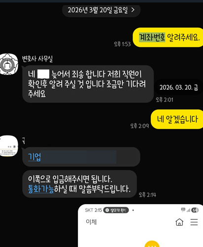 본지는 해당 계좌로 수임료를 받은 경위에 대해 A변호사 측에 질의했으나 별도의 답변을 받지 못했다. 단톡방에 있던 직원들은 본지에 “A 변호사에게 직접 문의하라”고 말했다.