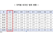 국내에서 범죄 혐의로 적발된 외국인 가운데 중국 국적자가 7년째 가장 높은 것으로 나타났다. 11일 국민의힘 정연욱 의원(부산 수영구)은 경찰청으로부터 제출받은 ‘외국인 범죄 현황’ 자료를 공개하며 “올해 8월 기준 외국인 범죄자 수는 총 2만2875명으로, 이 가운데 중국인이 1만186명(44.5%)으로 가장 많았다”고 밝혔다. 이어 “베트남 국적자가 2512명, 태국인이 1346명으로 뒤를 이었다”고 덧붙였다. 연도별 중국인 범죄자 수는 2019년 1만9382명, 2020년 1만8921명, 2021년 1만5815명, 2022년 1만6436명, 2023년 1만5403명, 올해 1만6099명으로 집계됐다. 정 의원은 “중국인 범죄자 비율은 최근 7년 동안 전체 외국인 범죄자의 절반 가까이를 차지하며 큰 감소세가 없는 상황”이라고 설명했다. 불법체류자 통계에서도 중국인의 비중은 두드러졌다. 법무부에 따르면 올해 8월 기준 국내 불법체류 외국인은 총 23만643명으로, 태국인이 11만7297명으로 가장 많았고 중국인이 4만3521명(18.9%)으로 뒤를 이었다. 정 의원은 정부의 중국인 단체관광객 무비자 입국 허용 조치에 대해 우려를 제기했다. 정부는 지난달 2